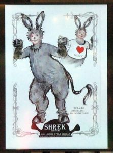 A nézők eddig Veréb Tamást és Blazsovszky Ákost láthatták a szerepben, mostantól pedig Bálint Ádám is fellép, így hármas váltásban kel életre a folyton fecsegő, de örök szerethető Szamár. Életünk bizonyos pontjaiban valamennyien egy picit talán Shrekek vagyunk, azt gondolva, hogy mi a világnak egy kitaszított részén élünk. Nincs szükségünk másokra, jól el vagyunk egyedül, falakat húzunk magunk köré. De azután mégis szembesülünk azzal, hogy kell egy barát – aki a történetben a szamár. Azt is el tudja mondani ez a mese, hogy lehetünk mi csúnyák, lehetünk zárkózottak, akkor is meg tudjuk találni a társunkat az életben. Hogy miként fogadjuk el magunkat, az valahogy a sikerekhez is el fog vezetni minket.