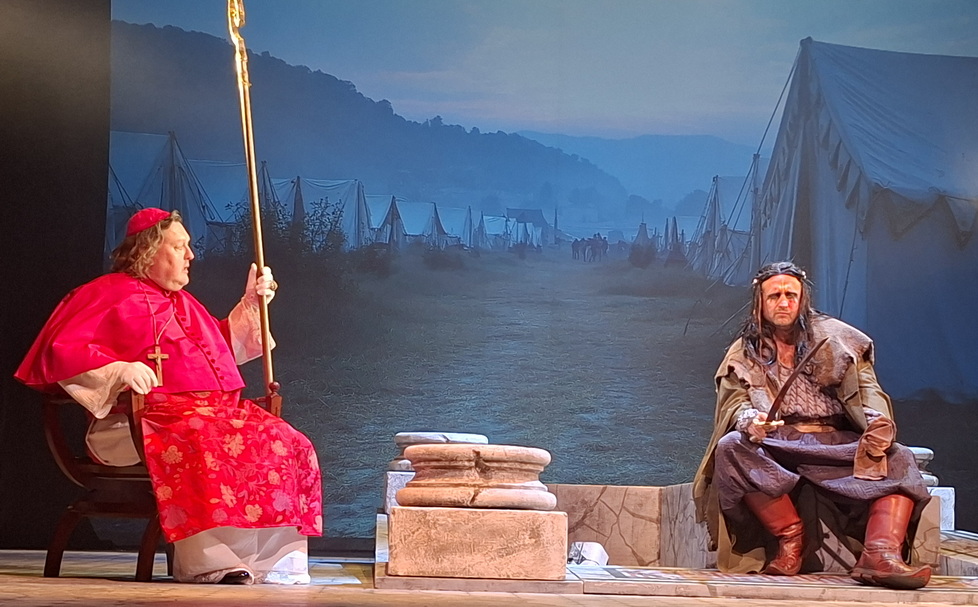 Erről a vadászról nincs is túl jó véleményük, hiszen ők a díszvacsora előkelőségei közé tartoznak. A pápa kísérőinek is támad némi kalandjuk a hun vezér őrségével és a nézők valószínűleg cseppet sem fognak meglepődni azon, hogy az akkor élt emberek gondolkodása, viselkedése milyen sok hasonlóságot mutat a napjainkban tapasztalhatóval. Persze tudjuk, tények hiányában mindez csak a legendák része, az írói fantázia hozza szemünk elé. De mégis…! Az Attilának szánt ajándékot rejtő láda megmenekül az elkobzástól, ám a tartalma egy jó ideig még rejtve marad. A nézőtéren még nem ismerhetik meg, de a fordulatos, pergő cselekmény miatt unalomról nem panaszkodhatnak.