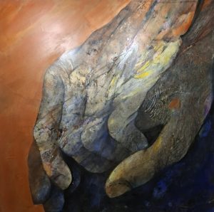 Azt festem, ami mélyen rezonál bennem, a kézzelfoghatót és az érzelmest vászonra ültetve. Ezek a művek több mint puszta ábrázolások; csatornák, amelyek átjárót nyitnak a lelkemből a néző szívébe. Az utóbbi években, ahogy az arcok elhomályosultak, a figyelmem a kezek beszédes nyelvére irányult. Ez a megfigyelés bontakozott ki a sorozatomban, amely központi témája a folyamatos művészi kutatásomnak. Számomra a kezek feltárják egy ember jellemét, a történetét, a kreativitását, a lelkét. Megértettem, hogy a gesztusok gyakran olyan világossággal beszélnek, amely felülmúlja a szavakat. Jól látszik ez a két kéz kapcsolatán a Vigasz című képen, amikor az egyik kéz megfogja a másikat és átadja a tiszta energiát a másiknak, aki bajban van.