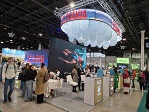 Bár az Utazás Kiállítás már befejeződött, volt ott egy kiállító, amelyikről külön is érdemes szólni, Nemcsak azért, mert állandó hűséges résztvevője a kiállításnak – tavaly ők voltak a díszvendégek – hanem azért is, mert minden évben nagy és látványos pavilont állítanak. A pultjaiknál mindig sok az érdeklődő és ők megtisztelik azzal a látogatókat, hogy részletes és bőséges információt nyújtanak. Utaznak is hozzájuk rengetegen. Télen inkább a síelők, hiszen a hegyeik bővelkednek sípályákban. Nyáron – ha lehet – talán még többen, kirándulók, komolyabb túrázók, a gyógyvizek kedvelői keresik fel. Az utazást segíti, hogy nyelvi nehézségekkel sem nagyon kell számolni. Ennyiből már biztosan kitalálták: Szlovákiáról van szó!
